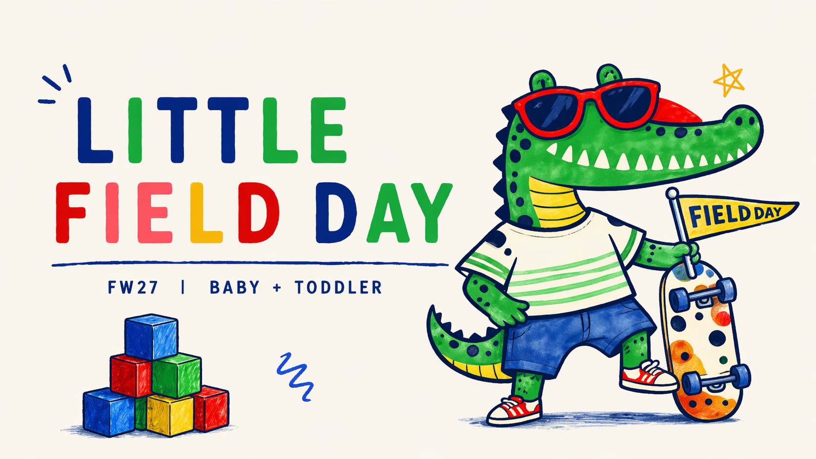 Little Field Day is a kidswear development project focused on creating a playful, concept-driven baby and toddler collection built around color, graphics, and everyday wearability. For this project, I developed the collection concept, created the color and graphic direction, designed the CAD lineup, and built out the assortment with a balance of statement pieces and commercial essentials.